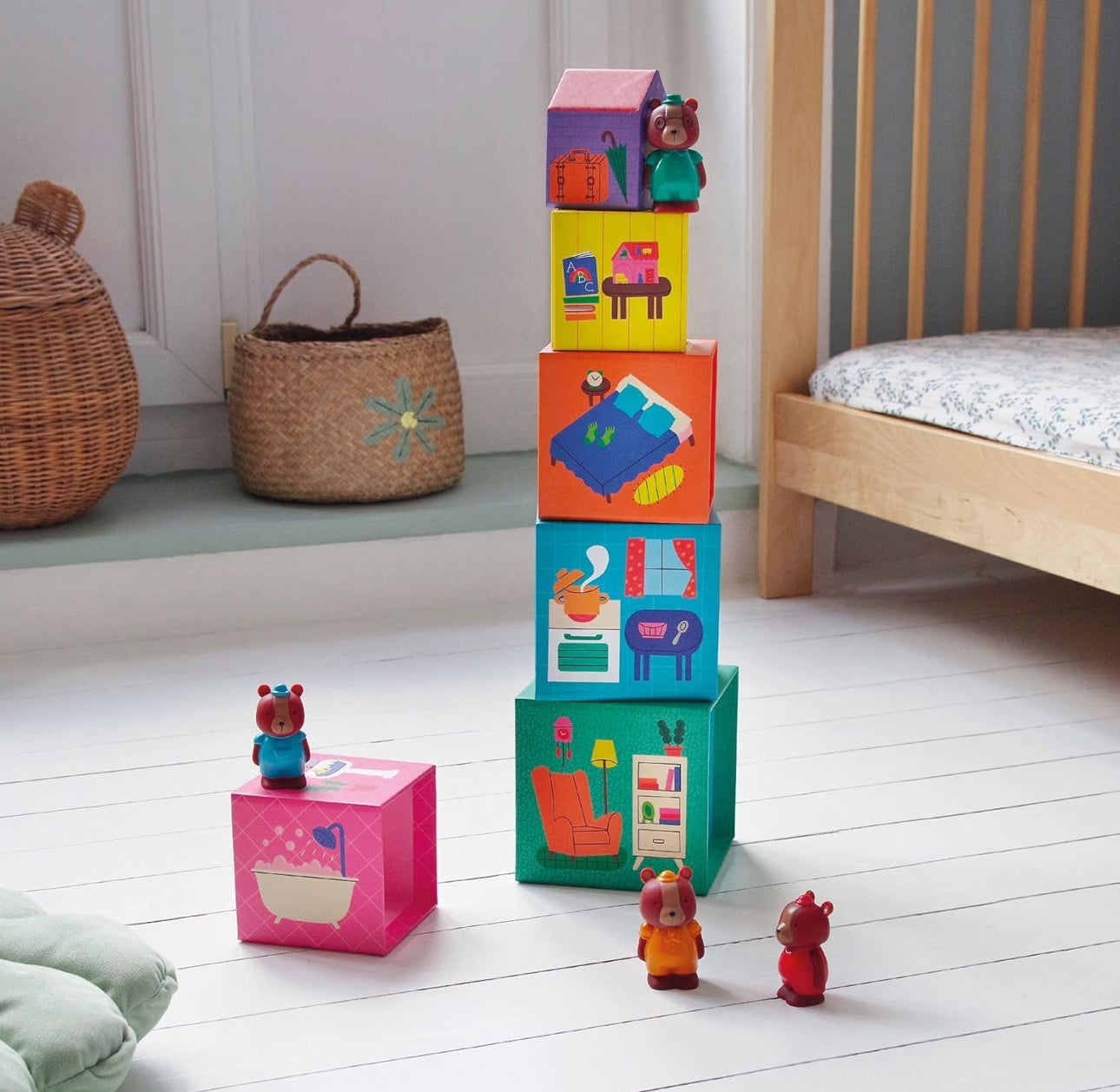 Fomenta sus habilidades motoras, coordinación y pensamiento lógico, además de ayudarle a aprender sus primeros conceptos con éste apilable tan alegre colorido ¡y cómodo!