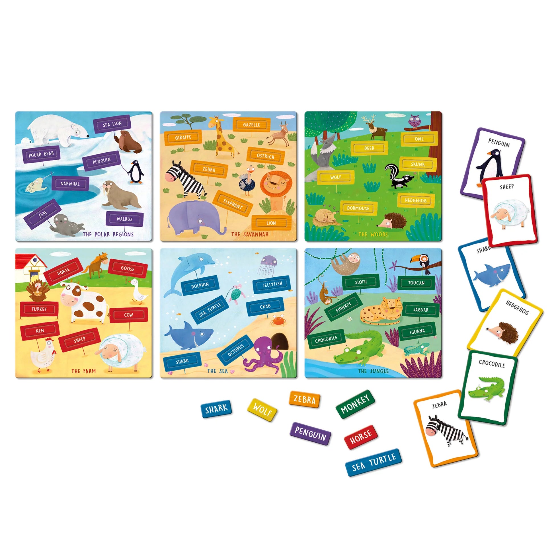 Un juego inspirado en el método Montessori para aprender los nombres de los animales en inglés y descubrir el ambiente en el que viven, aproximándose así́ al concepto de clasificación.