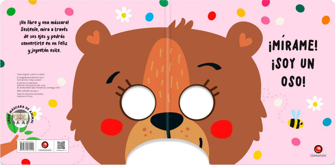 Un libro y una máscara. Sostenlo, mira a través de sus ojos y podrás convertirte en un juguetón osito.